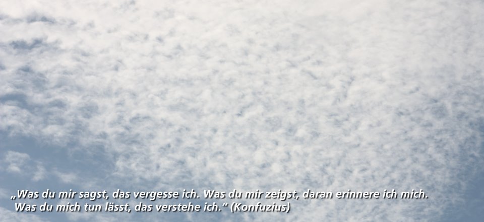 In diesem Entscheidungsprozess wird etwas in Ihnen beginnen, etwas heranreifen. Darum biete ich Ihnen auf diesem Weg Dialoge an und gebe Ihnen Impulse, damit Sie Erfahrungen machen können. Diese verhelfen zu einer nachhaltigen Wirkung. Denn Coaching ist eine Hilfe zur Weiterentwicklung. Für die dabei eingesetzten Methoden gilt: Sie „regen zum Mitdenken an“, aber „formulieren keine Rezepte“ (Theodor W. Adorno) Insofern bedeutet Coaching, sich selbst und andere auf einen gemeinsamen Weg bringen und das vereinbarte Ziel immer im Auge zu behalten.